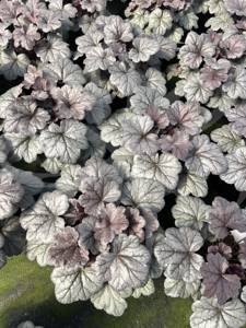 Heuchera Smoke and Mirrors will add contrast to your garden with the silvery grey foliage, dark veining and rosy undersides. Bloom spikes appear in midsummer on very tall, upright dark stems. This variety performs well in the heat and humidity of the Southeast. We would recommend morning sun and afternoon shade for best performance and to prevent leaf scorch in the hot afternoons.